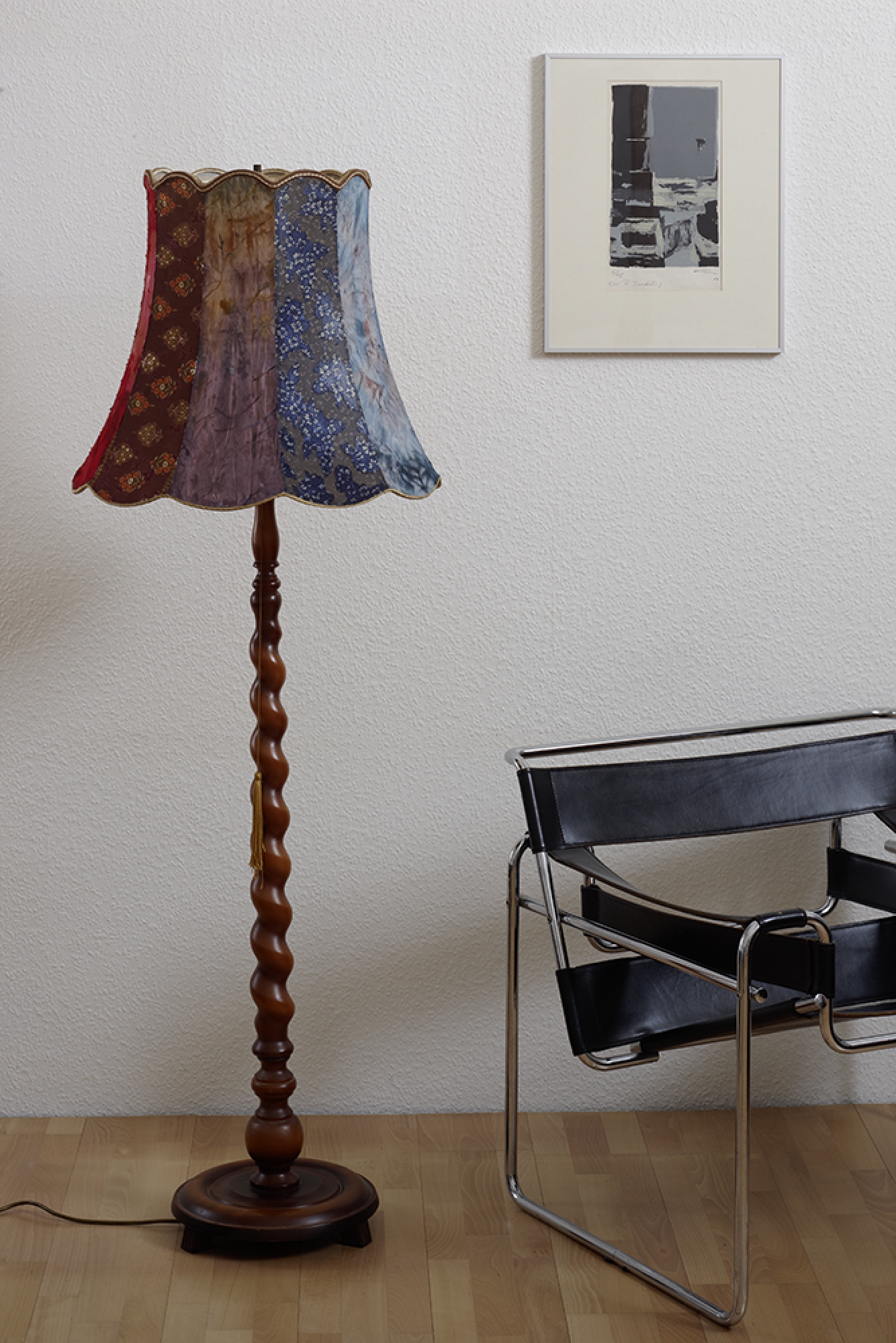 Material: Lampenschirm, Organzastoffe, Klebstoff, Holzständer